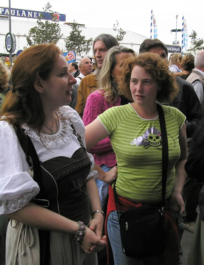 Isa freut sich. Wir sind da. Isa ist sehr zufrieden. Ich bin es auch. Ich muss aber zum Frisur *haarestraeub* Prost. Die erste Maß ist drin. Suchbild. Ja, so ein bisschen Ekstase ist doch mal eine willkommene Abwechslung ... Am nächsten Abend beim Schottenhamel. Isa sondiert die Lage. Ich muss definitiv zum Friseur. Wir verabschieden uns bis zum nächsten Jahr ;-)