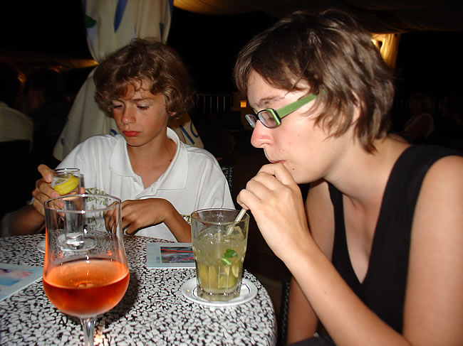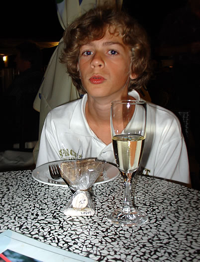 Vincent bekommt seinen ersten Sekt, der ihm natürlich nicht schmeckt, was gut für mich ist.