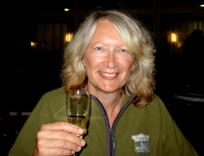 Ich bekomme endlich den Sekt in die Kralle.