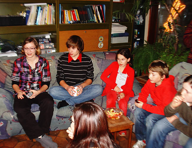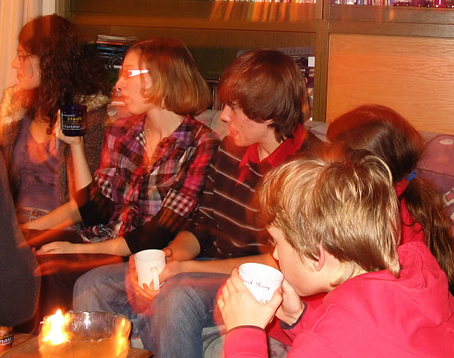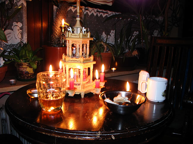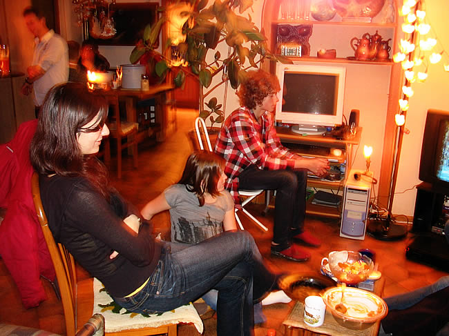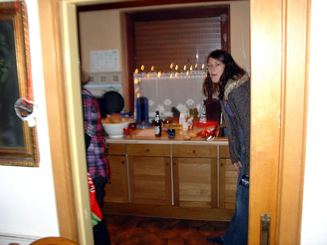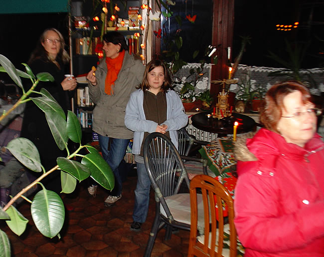 Ambiente innen. Traditionell wird erst draußen beim Glühwein gefroren. Da lege ich nämlich Wert drauf. Später durfte man reingehen. Einer der Herren des Hauses, aufs Chili wartend. Wichtige Gespräche. Es waren viele nette Mädels da, alle bruterfahren. Die Brut selbst machte gebrannte Mandeln ..... .... und widmete sich begeistert Rudolph, dem spannenden rotnasigen Rentier. Zu fortgeschrittener Stunde konnte ich keinen Glühwein mehr sehen. Erzgebirgische Impressionen. Um 1 hatte Annika ausgeschlafen. Und so sah es am nächsten Morgen plötzlich aus - Weihnachten kann kommen :)